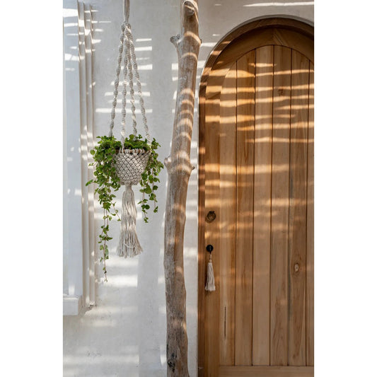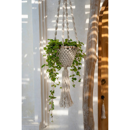 De Gedraaide Macramé Plantenhouder - Natuurlijk Wit - M