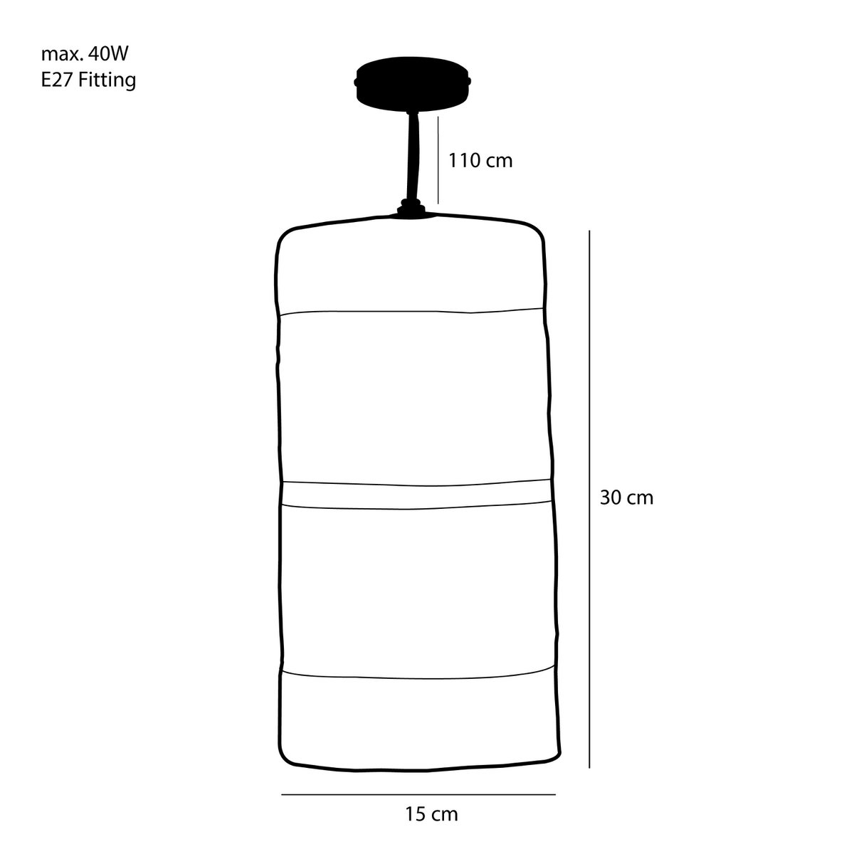 Geef je ruimte meer sfeer met deze stoere Jinx hanglamp van Mica Decorations. Geweven met natuurlijk jute in een lichtbruine tint, is deze lamp een echte eyecatcher. Met zijn moderne design en gedurfde zwarte strepen is de Jinx hanglamp onmisbaar voor een eigentijdse inrichting. De Jinx hanglamp is verkrijgbaar in diverse maten. Dit model is 30 cm hoog en heeft een diameter van 15 cm en is geschikt voor een E27 lichtbron van maximaal 40 Watt (niet inbegrepen). De totale kabellengte is 130 cm waardoor je de hanglamp overal wel leuk kunt ophangen. Ook leuk om te combineren met meerdere Jinx hanglampen van Mica Decorations voor stijlvol geheel.